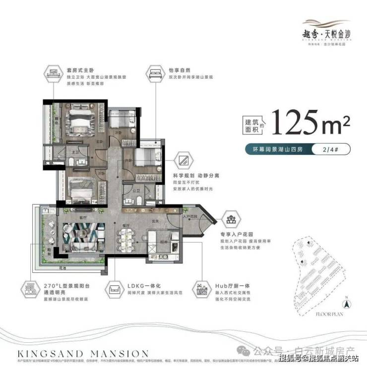125㎡四房二卫户型,同样采用私梯入户设计,提升居住质感;约 6.8 米宽景阳台,带来开阔的视野,可俯瞰社区园林与外部湖山景观;LDKG 一体化布局将客厅、餐厅、厨房、阳台打通相连,打破空间壁垒,增强家人之间的互动交流,无论是家庭聚会还是日常休闲,都能拥有宽敞的活动空间;纯南向设计让室内采光充足,四季通透,适合二孩家庭或三代同堂居住。