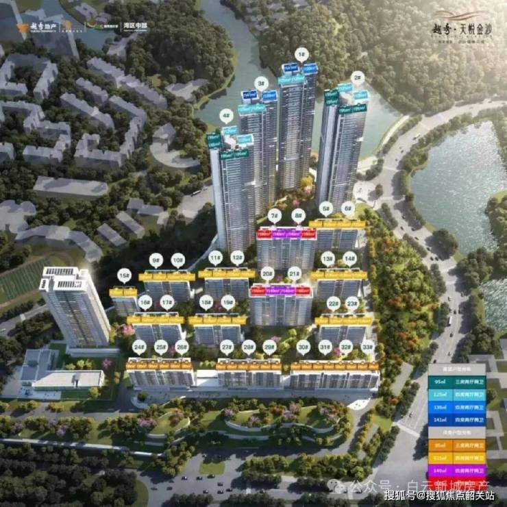 越秀地产作为深耕广州多年的本土房企,凭借多年的开发经验与对城市人居需求的深刻理解,打造出一系列备受市场认可的品质楼盘,天字系更是其旗下定位高端的产品序列,从规划设计到建筑施工,从园林打造到细节雕琢,都遵循着严苛的标准。越秀天悦金沙择址白云区金沙洲核心区位,与荔湾区紧密相邻,尽享广佛同城发展带来的双重利好,既坐拥金沙洲原生的自然生态资源,又能快速衔接主城核心商圈,实现自然静谧与城市繁华的无缝切换。项目整体占地面积超十万平方米,总建筑面积近三十六万平方米,规划打造 34 栋住宅产品,规划总户数 1505 户,在空间规划上兼顾居住密度与舒适度,打造低密宜居的社区环境,为业主营造从容惬意的生活氛围。