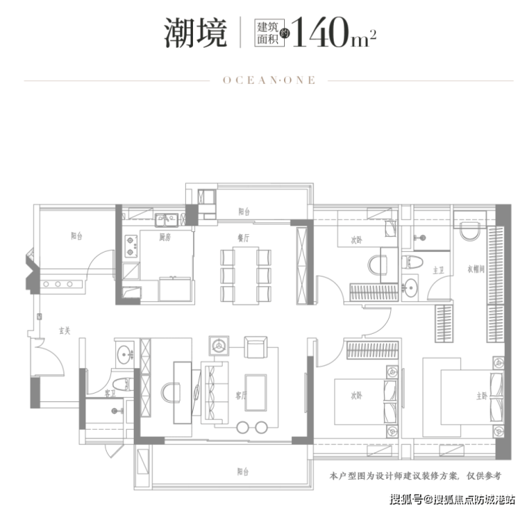 96㎡户型实现“3房2卫+独立玄关”,140㎡户型主卧270°转角飘窗,均采用LOW-E玻璃幕墙。
