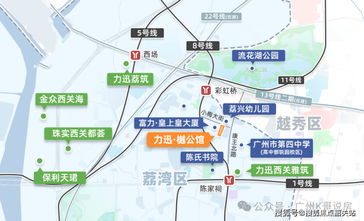 力迅樾公馆雄踞广州番禺市桥核心正脉,扎根番禺主城发展的黄金中轴,紧邻市桥河一线滨水带,是番禺老城区稀缺的低密滨水改善住区。这片区域作为番禺最早的城市中心,历经数十年发展沉淀,早已形成了成熟的城市配套与浓郁的生活氛围,同时承接广州南拓战略的发展红利,是番禺主城价值升级的核心承载地,土地稀缺性与居住价值持续攀升。项目依托区域成熟的交通骨架,构建起“地铁+主干道+快速路”的立体交通路网,距离地铁3号线市桥站直线距离仅约800米,步行10分钟即可抵达,3号线作为广州南北大动脉,3站直达万博CBD,8站直达珠江新城,无需换乘即可贯通广州南北核心城区,高效串联城市核心功能区。自驾出行方面,项目紧邻禺山大道、光明北路两大城市主干道,快速接驳新光快速、华南快速、南沙港快速三大纵向快速路,20分钟直达珠江新城,30分钟通达广州南站,无论是日常通勤、周末休闲还是跨城出行,都能实现高效便捷的出行体验,真正以主城核心地段为基底,以立体交通路网为脉络,执掌城市发展的速度与生活的便捷度。