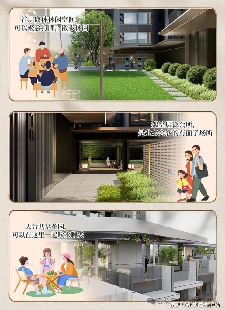 力迅樾公馆打破了番禺主城核心区住宅高密度、低绿化的固有局限,在寸土寸金的市桥核心区,打造了容积率仅2.8、绿化率高达35%的纯粹低密住区,远低于区域内同类型项目的容积率标准,把更多的土地留给了自然绿意与公共活动空间,彻底告别了高密度社区的拥挤与压抑,为业主营造了更舒适、更开阔的居住体验。项目邀请国内顶尖景观设计团队操刀,以“滨水栖居、全龄共生”为设计理念,打造了“一轴两带多组团”的沉浸式景观体系,从入口处的礼仪景观轴,到中央园林的核心景观带,再到宅间的多个主题景观组团,一步一景的景观设计,让归家之路成为一场穿越绿意的旅行。社区园林甄选上百种原生绿植,打造了四季有景、季季不同的植物景观,春有繁花、夏有浓荫、秋有金桂、冬有绿意,让业主在家门口就能感受自然的时序变化。在功能布局上,社区遵循“动静分区、全龄适配”的原则,针对不同年龄段业主的需求,打造了全维度的活动空间,为0-12岁儿童打造了分龄段的游乐成长区,配备了安全丰富的游乐设施与科普互动装置,让孩子在自然中释放天性、快乐成长;为青年人打造了专业的运动健身区、环形有氧跑道,满足日常健身、运动休闲的需求;为老年人打造了康养休闲区、邻里交流空间,配备了康养健身器材与休憩座椅,可满足晨练、品茶、对弈等休闲需求。同时社区利用楼栋架空层打造了泛会所共享空间,设置了共享书吧、共享茶室、亲子活动室等多个功能区,搭配社区内的邻里社交会客厅、阳光草坪、林下休憩空间,为业主提供了全场景的休闲社交场所,让不同年龄、不同爱好的业主,都能在社区里找到属于自己的乐趣,真正实现让生态融入生活,让空间安放全龄欢喜。
