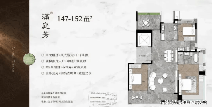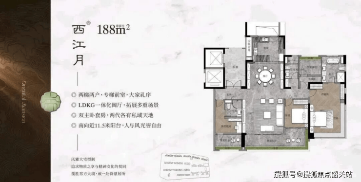 A:项目提供107㎡三房、147㎡四房、188㎡四房及268㎡大平层等多种户型。107㎡适合刚需及小家庭;147㎡和188㎡适合三代同堂的改善家庭;268㎡则专为高端精英家庭打造,满足极致居住需求。