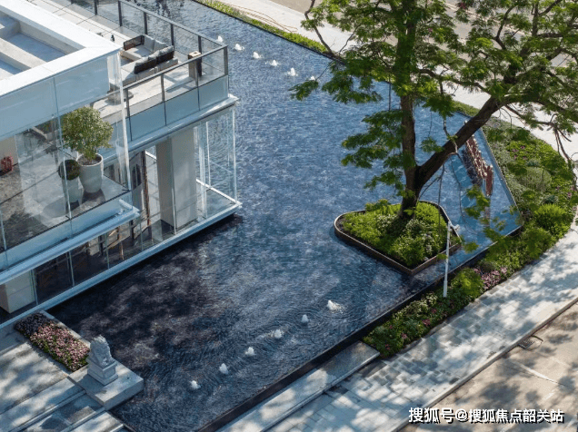 在社区内部,景观设计同样延续了对外部生态的尊重与融合。项目打造了约1.3万平方米的中央大花园,最宽楼距达到约150米,确保了低密度下的开阔视野与充足采光。园林设计灵感源自酒店微度假的高定理念,通过“一轴·两环·五核心·多花园”的布局,复刻了波澜浮光中的栖心之境。大片玻璃幕墙的设计无限延伸了室内外空间格局,让整座生活馆成为光的容器。在前厅,水景与凤凰木、玻璃盒子形成层层递进的关系,透过玻璃盒子往外看,树影婆娑、光斑灵动,营造出天开一境的豁然开朗之感。缓步前行,建筑与自然的边界逐步消弭,草坪空间与儿童活动区让人们得以沉浸式地与自然对话。静享草坪的露营时光,看孩童嬉笑打闹,这种闯入水岸秘境的感觉,正是敏捷·万博金湖壹号想要传递给每一位居者的生活愿景。