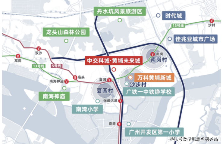 项目位于黄埔区南岗地段,广深沿江高速以南,开发大道以东,地理位置处于老黄埔向增城过渡的边缘地带。虽然不属于传统核心区,但紧邻地铁5号线与13号线夏园站,公共交通便捷,通勤效率较高。自驾方面,项目靠近黄埔东路、中山大道、广深沿江高速等主干道,可快速连接金融城、珠江新城及深圳东莞等地,形成一小时都市圈。尽管地处相对外围,但凭借交通网络的完善与低成本地价带来的价格优势,项目仍具备较强的市场吸引力,尤其适合预算有限但又希望享受主城区资源的购房者。