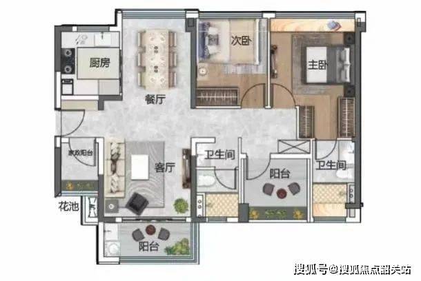 超级王牌,极致产品,——建面约79平的3+1房。