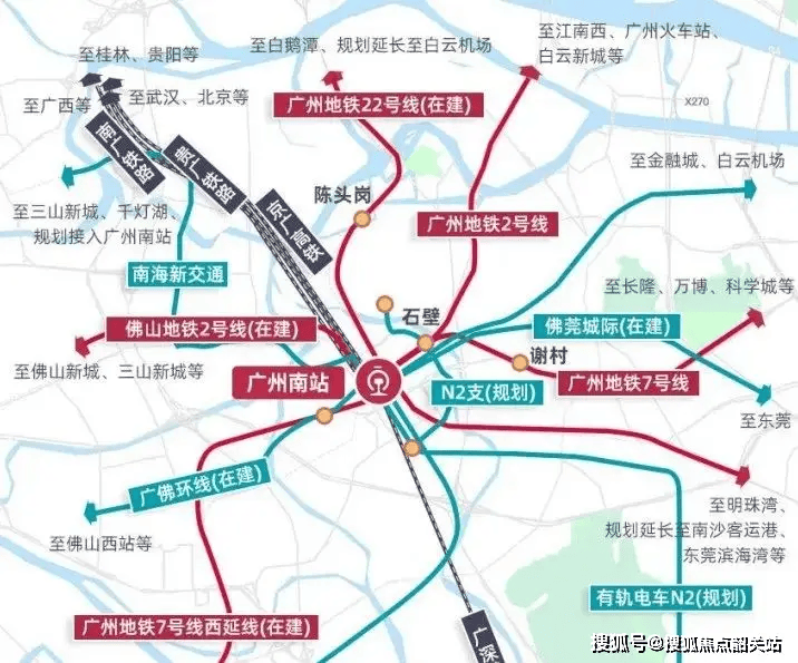 项目位于广州南站东北侧,直线距离南站仅800米,通过地下连廊直达地铁2号线/7号线/22号线石壁站(车程5分钟)。