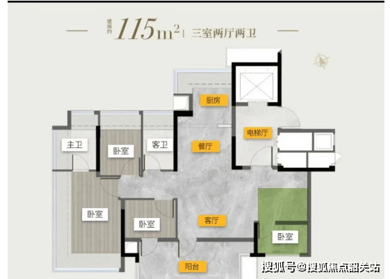 105–115㎡四房:实现四开间朝南或南北通透,主卧套房配独立卫浴,满足二胎家庭功能需求;