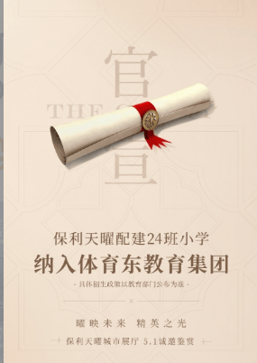 答:社区自建学校已明确纳入体育东教育集团,办学规划已完成官方备案,最终入学划分以教育局每年公示为准,开发商严格遵守政策要求,不做入学承诺。