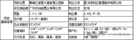 小区共规划9栋楼,全部都是3梯4户/2梯2户设计,层高3.3-3.5米,户户朝南,总高45-47层。