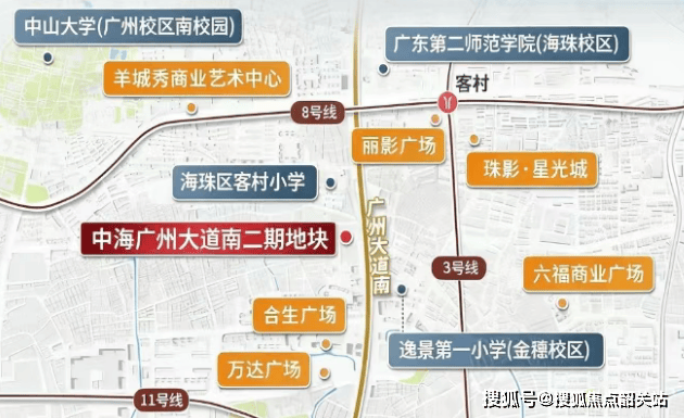 项目距地铁3号线、8号线客村站步行距离约800米,这一数据构成了中海·广府万宸交通价值的基石。除了现有的双地铁交汇优势外,项目周边还覆盖了在建的地铁11号线以及规划中的26号线站点,形成了四线环绕的轨道交通网络。其中,8号线作为贯穿海珠区核心走廊的大动脉,直接串联起琶洲会展中心、客村商圈以及昌岗文教区,使得居民在日常通勤中能够高效触达广州最具活力的经济与文化节点。对于依赖公共交通出行的家庭而言,这种高密度的轨交覆盖意味着早晚高峰时段无需经历漫长的接驳等待,即可快速融入城市主干交通流。