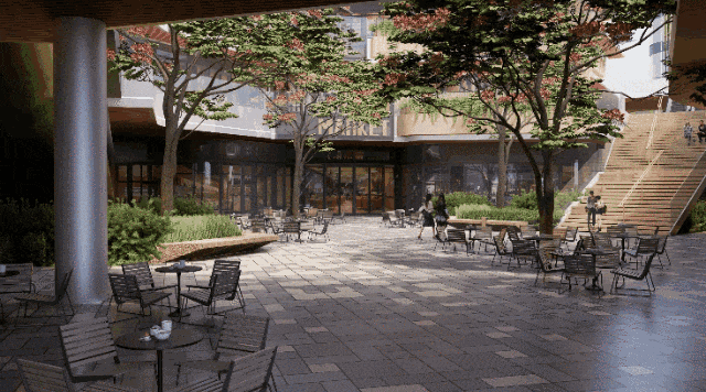 中海·广府万宸在社区内部配套的打造上,突破了传统平面园林的局限,创新性地构建了立体式的景观体系。项目充分利用了首层架空层的空间优势,将一楼架空层高度设定为9米,并在二楼再次设置架空层,住宅主体从14米标高开始起步。这种垂直方向上的空间留白,使得地面的园林景观得以向上延伸,形成了多层次的绿化视觉效果。与传统下沉式会所不同,项目将会所功能直接置入一楼,使其与外部园林无缝融合。业主在会所内活动时,视线可直接穿透至户外绿植,实现了室内运动空间与自然生态环境的交互。这种“景观健身会所”的设计理念,将跑步机、瑜伽区等运动设施面向城市天际线或园林景观布置,让运动不再是枯燥的机械重复,而成为一种享受风景的身心体验。