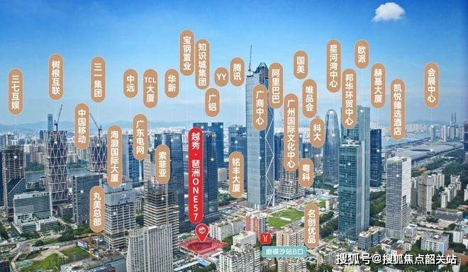 这个项目最吸引人的地方在于它的地段。琶洲作为广州三大CBD之一,和珠江新城、金融城一起形成“黄金三角”。这里定位人工智能、数字经济和总部经济集聚区,已经聚集了阿里巴巴、唯品会、腾讯、小米、YY、广东电网等一大批头部企业,未来还会继续引入更多巨头。周边总部大楼林立,从项目出发,走几百米就能到很多知名公司办公地点,生活和工作半径超级小。