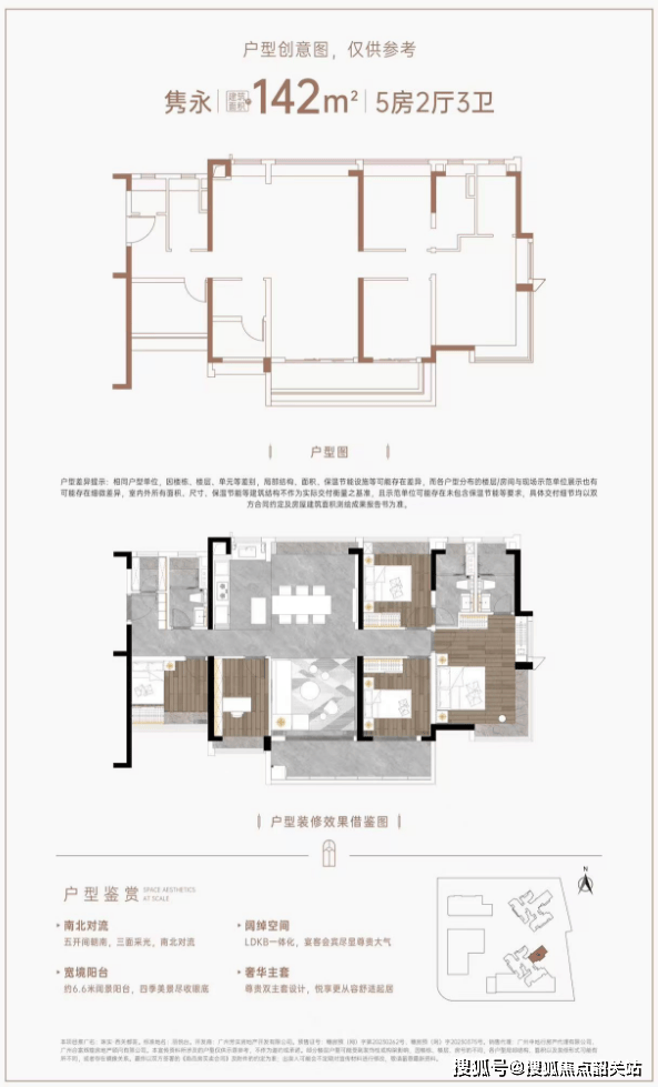 142㎡ 4 + 1 房户型东南向布局,采光极佳。对于改善型购房者追求一步到位的需求,实用率约 100%,空间不浪费。