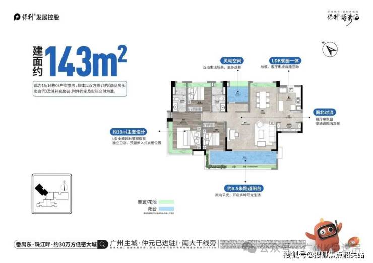 景观不错,东南临海 L型环幕海景-珠江入海口+狮子洋,瞰1.8km海景面。东低西高围合布局,max级别海园双景。