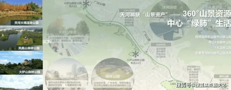 7. 能建·天河麓誉府周边有火炉山、凤凰山、天麓湖三大森林公园,如同被两山一湖环绕,景致优美,开启了舒适居住的新方式。三大森林公园作为天河的城市绿肺,植被繁茂,空气清新,为项目营造出天然的生态屏障。居者可随时走进山林,享受徒步、露营等休闲活动,感受大自然的馈赠。项目自身“双山环抱”的立体景观体系与周边山林景致相呼应,台地式园林、峡谷式空间布局让社区内的景观与外部山景融为一体。270°弧形全景飘窗和大面宽景观阳台将山景引入室内,推窗即可见青山叠翠,日均呼吸着富含负氧离子的清新空气,在繁华都市中寻得一处与自然共生的居所,开启了“引山入城,园城相融”的舒适居住新体验。