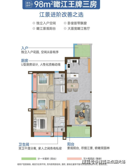 110㎡四室两厅两卫户型,赠入户花园,实用率近 99%,堪称空间利用典范。卧室全明飘窗,U 型厨房设计,让烹饪更得心应手。南北双阳台对流,通风采光极佳,江景尽收眼底,四开间朝南,三卧室南向瞰江,主卫干湿分离,宽尺主套设计,满足改善家庭的居住需求。