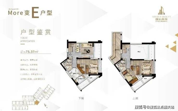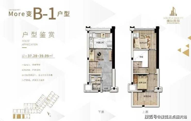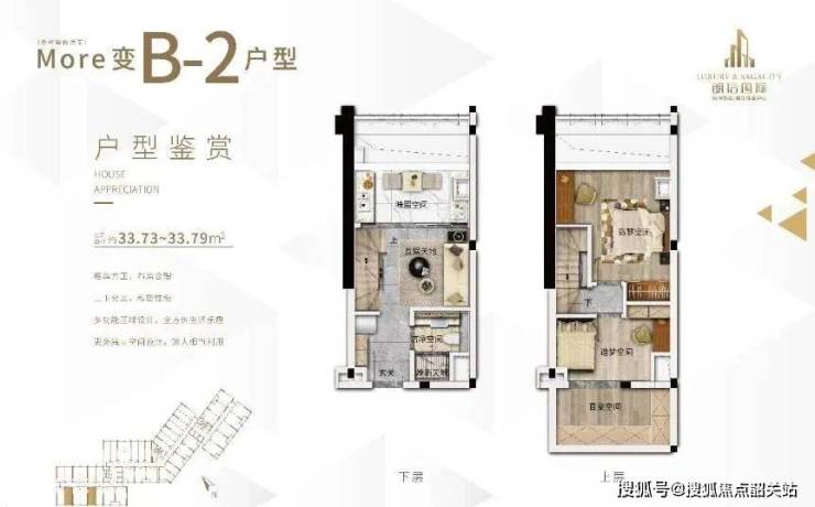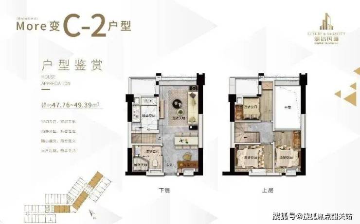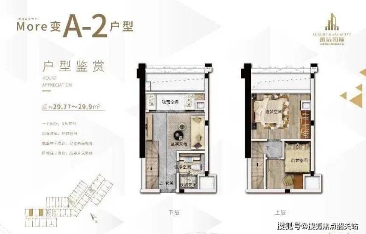 户型:30-75 平方米的 LOFT 复式公寓,层高 4.5 米,空间利用率高