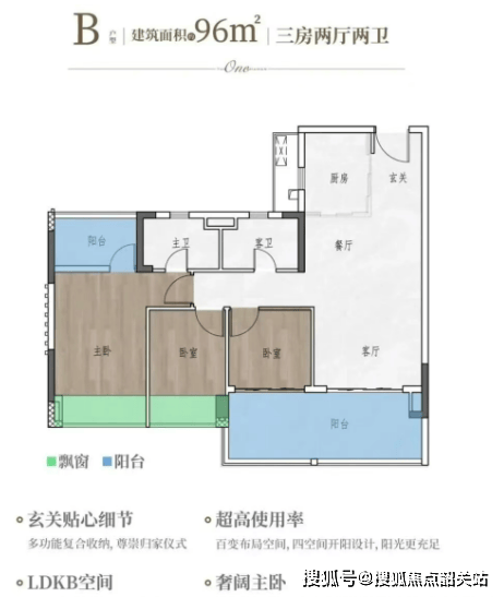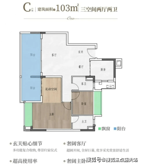 96㎡/103㎡三至四房:动静分区合理,主卧带飘窗,适合二胎家庭;