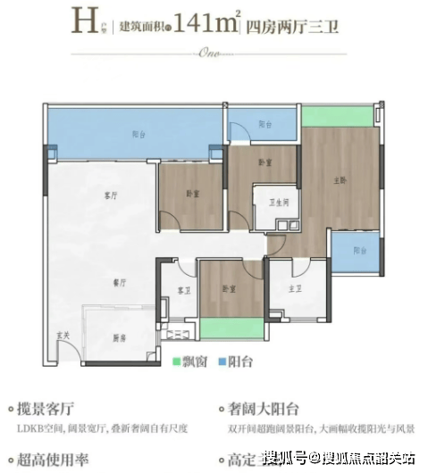 120㎡/141㎡四房:南向大面宽,双阳台设计,部分单位享园林或城市景观,定位本地改善客群。