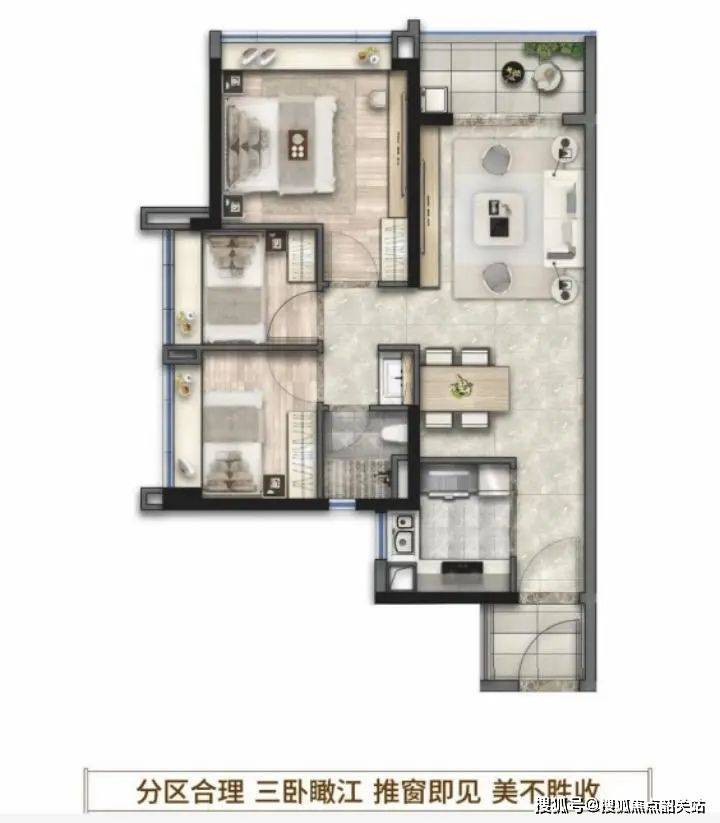 最高可三卧瞰江,市面罕见江景小三房