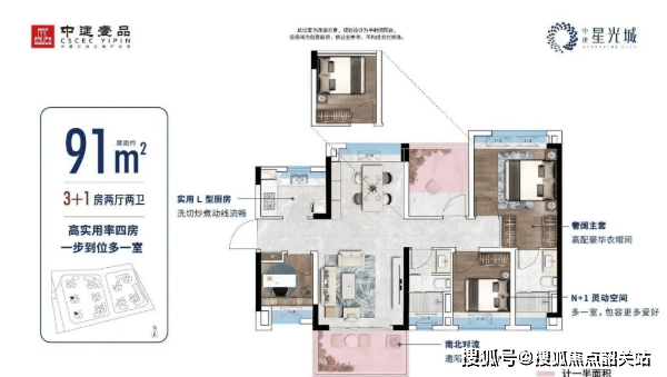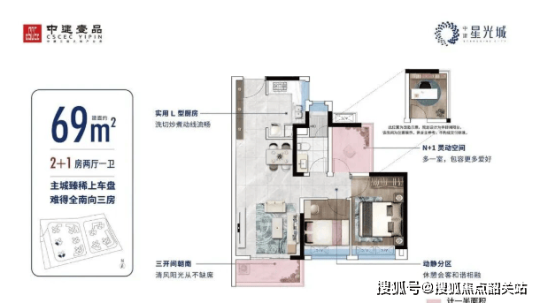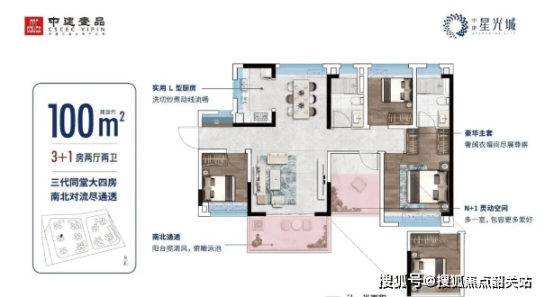 中建星光城目前主推建面约69㎡至100㎡的三至四房产品,全部为高标准精装交付,主打“小面积大空间”的刚需友好设计。