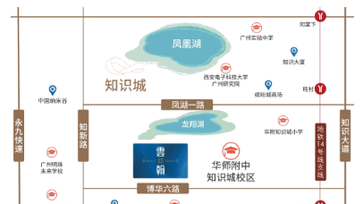 在生活与教育配套方面,广开云翰具备知识城南板块中较为突出的资源组合。项目一路之隔即为华附知识城校区,直线距离约100米,该校已于2023年正式招生,是目前黄埔区投资规模与技术标准均较高的学校之一。