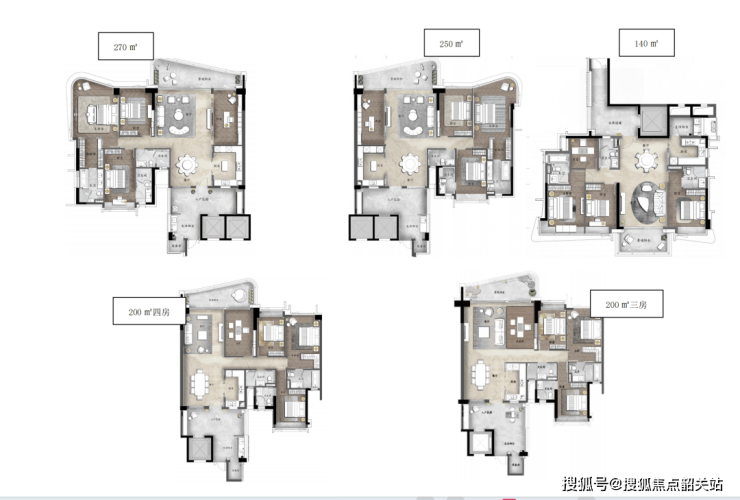在售天启组团,面积约140-200-250-270㎡,4梯3户·3.3米层高·23-27层豪华装修。