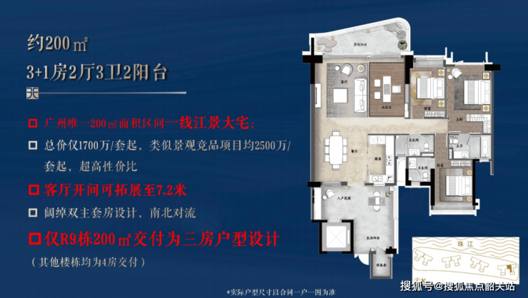 最新推R9栋东单边位200㎡的望江大平层。全屋超13米开间,享500米一线江景产品。