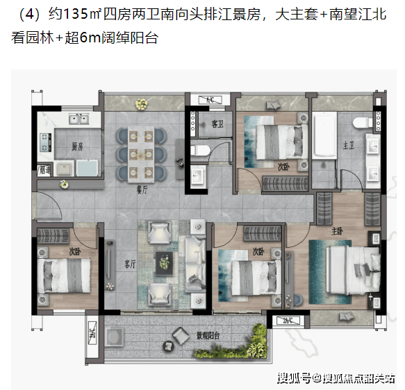 约135㎡四房两卫南向头排江景房