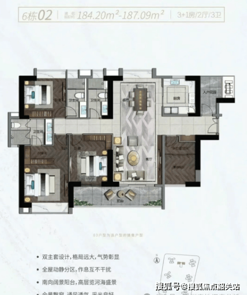 大户型:193㎡、238㎡、260㎡四房两厅三卫