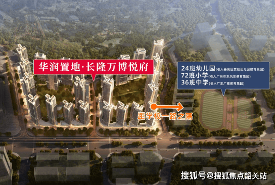 番禺华润・长隆万博悦府在长隆万博 CBD 打造人居新范式,项目分两期开发,一期占地约 5.6 万㎡,建筑面积约 38.1 万㎡,二期占地约 5.7 万㎡,建筑面积约 36.9 万㎡。配建 21 班番禺实验幼儿园(省一级)、72 班东风东小学、36 班广雅中学,实现幼儿园到初中省级教育全覆盖。108-300㎡全南向四房设计注重实用性与舒适性,社区融合商业、教育、文旅资源,树立万博板块人居新标杆。