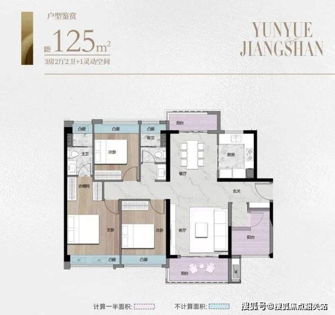 125㎡四房两厅两卫:这款户型专为追求舒适与品质的家庭打造。南北对流的设计,使室内空气流通顺畅,保持舒适的居住环境。可俯瞰池园美景,让业主在家中就能享受园林景观带来的愉悦。约 4.7 米南向景观阳台,增加采光通风,同时可作为休闲空间,欣赏小区美景。四房两厅两卫的布局,功能分区明确,客厅与餐厅相连,形成宽敞的公共活动区域。主卧空间阔绰,配备独立卫生间和衣帽间,为主人提供专属的舒适空间。次卧和其他房间尺度适宜,可根据家庭成员需求进行个性化装修,如打造书房、健身房等。整体户型设计合理,空间利用充分,为家庭提供高品质的居住体验。
