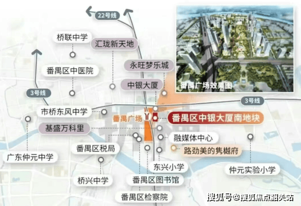 项目傲立于番禺广场中轴线之上,与番禺区政府仅一路之隔,直线距离约200米。这里不仅是番禺的政治中枢,更是城市资源高度聚合的核心板块。财政局、税务局、教育局等重要职能部门环伺左右,番禺图书馆静谧相伴,市政配套成熟完善,生活秩序井然有序。尤为难得的是,项目虽处城市心脏,却巧妙避开了主干道喧嚣——不临街、无噪音、少粉尘,真正实现了“入则宁静,出则繁华”的理想居住状态。