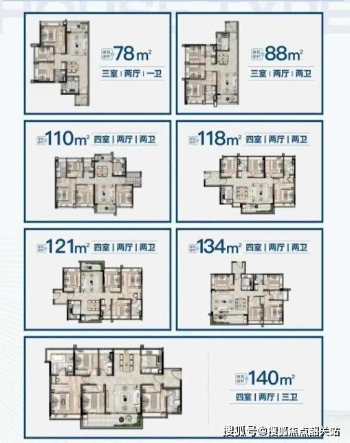 项目提供多种面积段住宅,满足不同家庭结构及改善型需求: