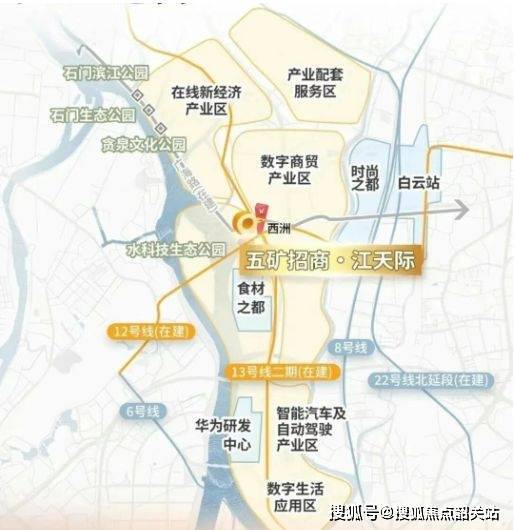 五矿招商江天际位于白云区广海路西洲站上盖,地处槎头综合体片区核心区域,周边生活设施完善,交通体系成熟,教育、商业、医疗及休闲资源齐全,形成城市核心区的高便利性生活圈。