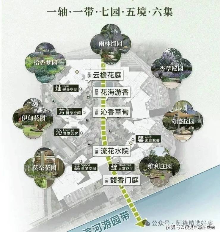 项目园林将打造六大社区花园,外部将优化南侧水道,打造一线河景+双公园