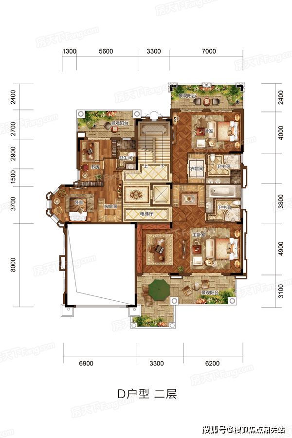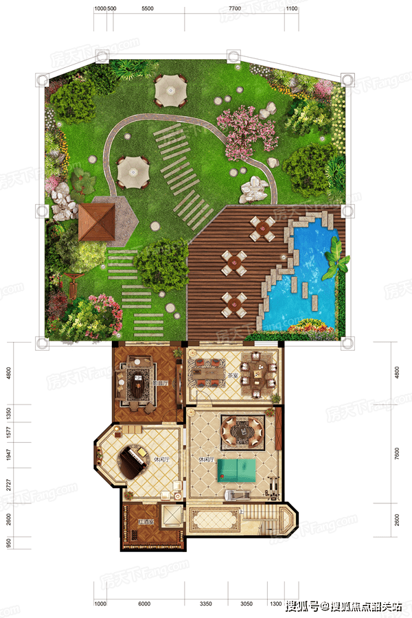 花园面积:631-897㎡赠送面积:759-1297㎡