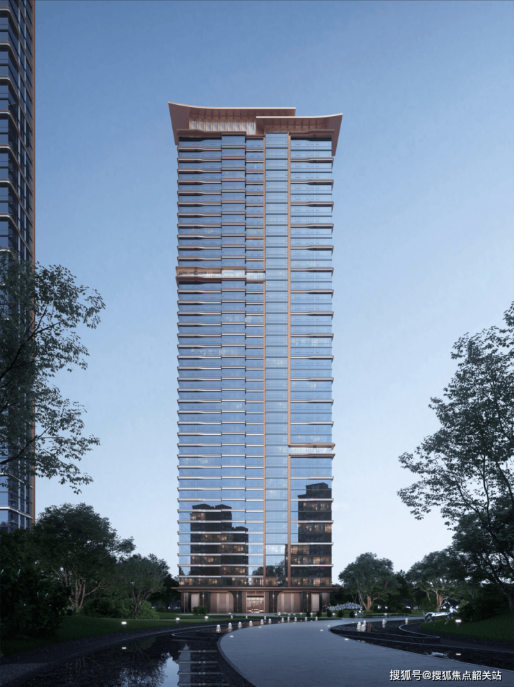 答:建发灯湖缦云外立面采用大面积玻璃立面搭配铝合金线条,南向窗墙比超 90%,同时采用 270° 转角玻璃设计,通过楼板横向拉力代替传统立柱,实现了视觉上的 “墙面消失术”。同时建发灯湖缦云屋顶采用东方诗意重檐设计,将传统中式建筑的尊贵元素与现代建筑工艺结合,形成了独具辨识度的城市界面,区别于市场上同质化的现代外立面设计。