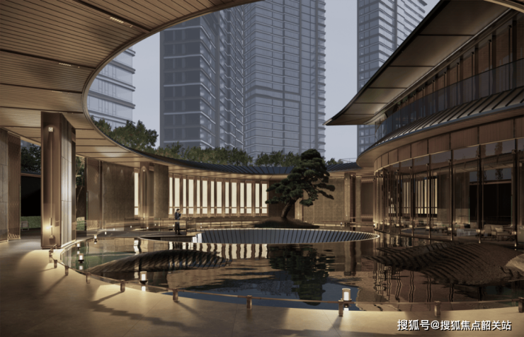 建发灯湖缦云社区主入口采用新中式东方美学设计,以 “珠水玉翠” 为设计内核,打造环形主题庭院,结合项目外玉带环腰的水系格局,营造出人与自然和谐共生的社区氛围。