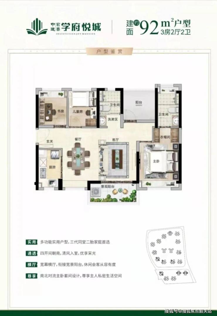 92㎡舒适横厅设计,南北更通透,主卧增设步入式衣帽间,约6m宽瞰景阳台,二胎家庭的最佳选择。