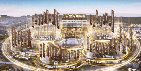 白云区作为广州发展的黑马,在政策力度、人口、产业、GDP增速等方面遥遥领先。十四五规划中,白云区总投资额达到1.67万亿,位居全市首位。白云区拥有丰富的陆空交通枢纽资源,是广州枢纽最集中的行政区,产业发展高度集中。白云站金街依托这一强大的经济基础,结合“枢纽+”六大产业集群,推动城市向“枢纽城市”的跃升,吸引了华为研发中心、设计之都等高科技企业入驻。