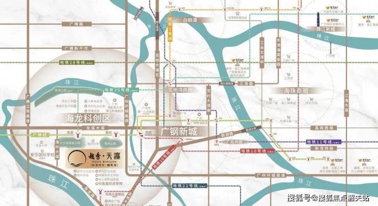 自驾:越秀·天瀛前面海龙路接驳各条高速,东接广州环城高速,西接广佛江珠高速,南接广台高速,距离荔湾核心聚龙湾约9公里,距离琶洲20公里,距离珠江新城20公里。