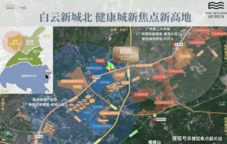 新城·翡丽云境所在的钟落潭镇,是白云区融入湾区战略的重要节点,堪称创新极核与产城协同的典范。这里坐拥千亿级美丽健康城与广州第二大学城,形成“产业+教育”双轮驱动的发展格局。健康城内,广药集团、何济公等29家知名企业已入驻,涵盖医药研制、健康服务等四大功能片区,年产值持续攀升;大学城聚集13所高等院校,为湾区输送大量科技人才。