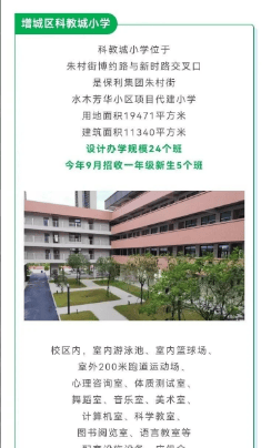 答:项目对口公立幼儿园、科教城小学、朱村中学,具体入学政策以当年增城区教育部门官方公示为准,业主子女可优先享受片区入学资格。