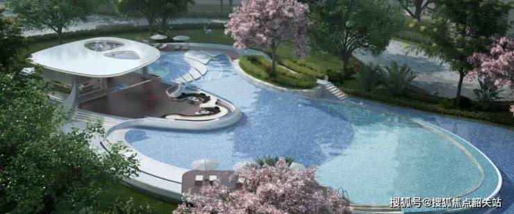 【实景园林】区域内唯一6万㎡岭南园林,涵括:4大主题园林配套,配备篮球场、游泳池、游乐场、400米夜光跑道
