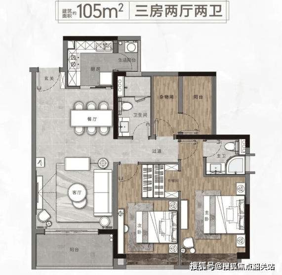 所有住宅采用2梯4户设计,层高介于17至32层之间,得房率高达80%-81%,远超市场平均水平。户型方面,主推105㎡、125㎡、127㎡三大经典面积段,布局方正、动线合理,兼顾实用性与空间感。
