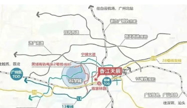 项目占据湾区东进战略要地,交通网络多维高效。规划中的广州地铁28号线(佛穗莞城际)陈家林站距项目仅约900米,该线路已获工可批复并启动施工招标,设计时速160公里,未来3站直达鱼珠、4站通达琶洲,无缝衔接广佛莞核心城区。同时,黄埔有轨电车2号线正在建设,将在片区设多站;社区更设有全天候楼巴专线直通天河CBD宏发大厦,高峰期10分钟一班。此外,项目距新塘TOD枢纽仅5公里,依托穗深城际、新白广城际等“九轨交汇”格局,高铁通达7省63城,畅联湾区动脉。