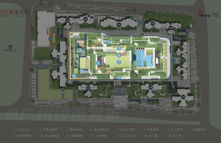 教育方面,振业天成配建了一所社区幼儿园,并且紧邻省一级黄埔军校小学(现已纳入广大附中旗下)。尽管没有直接配建小学和初中,但根据就近原则,业主子女大概率可以在黄埔军校中小学和科学城实验小学之间选择就读。这使得教育资源具有一定的确定性和便利性。
