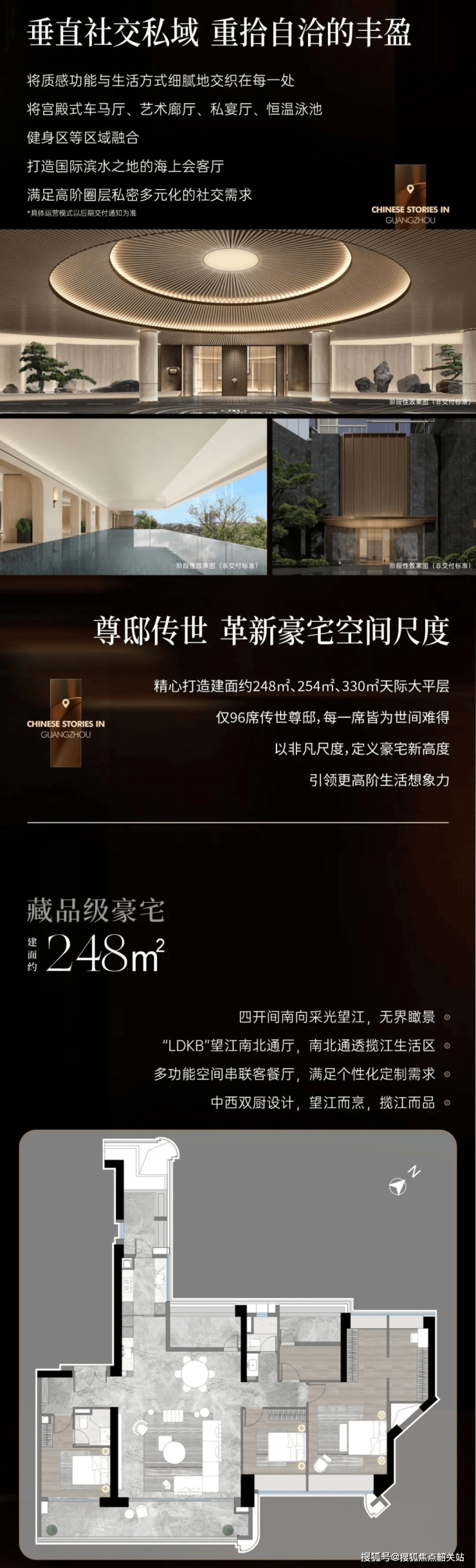 琶洲·樾|华樾位于广州市的核心地带,占地面积约2.37万㎡,建筑面积约4.96万㎡,绿化率高达35%。该项目仅有一栋住宅楼,总户数为96户,提供2梯2户和2梯1户两种配置。户型涵盖248-253-330㎡天际大平层,旨在打造极致奢华的居住体验。