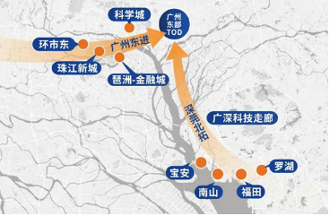 (新塘 TOD 枢纽与湾区交通路网优势)